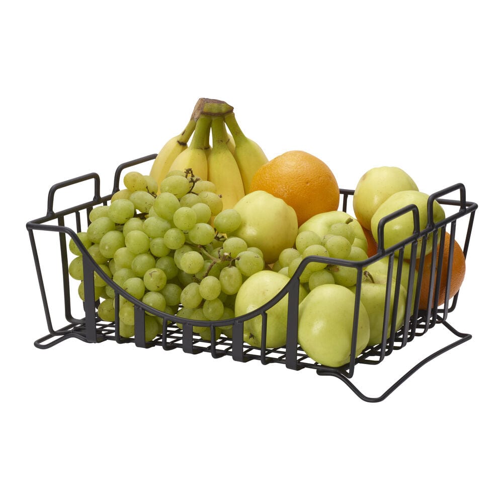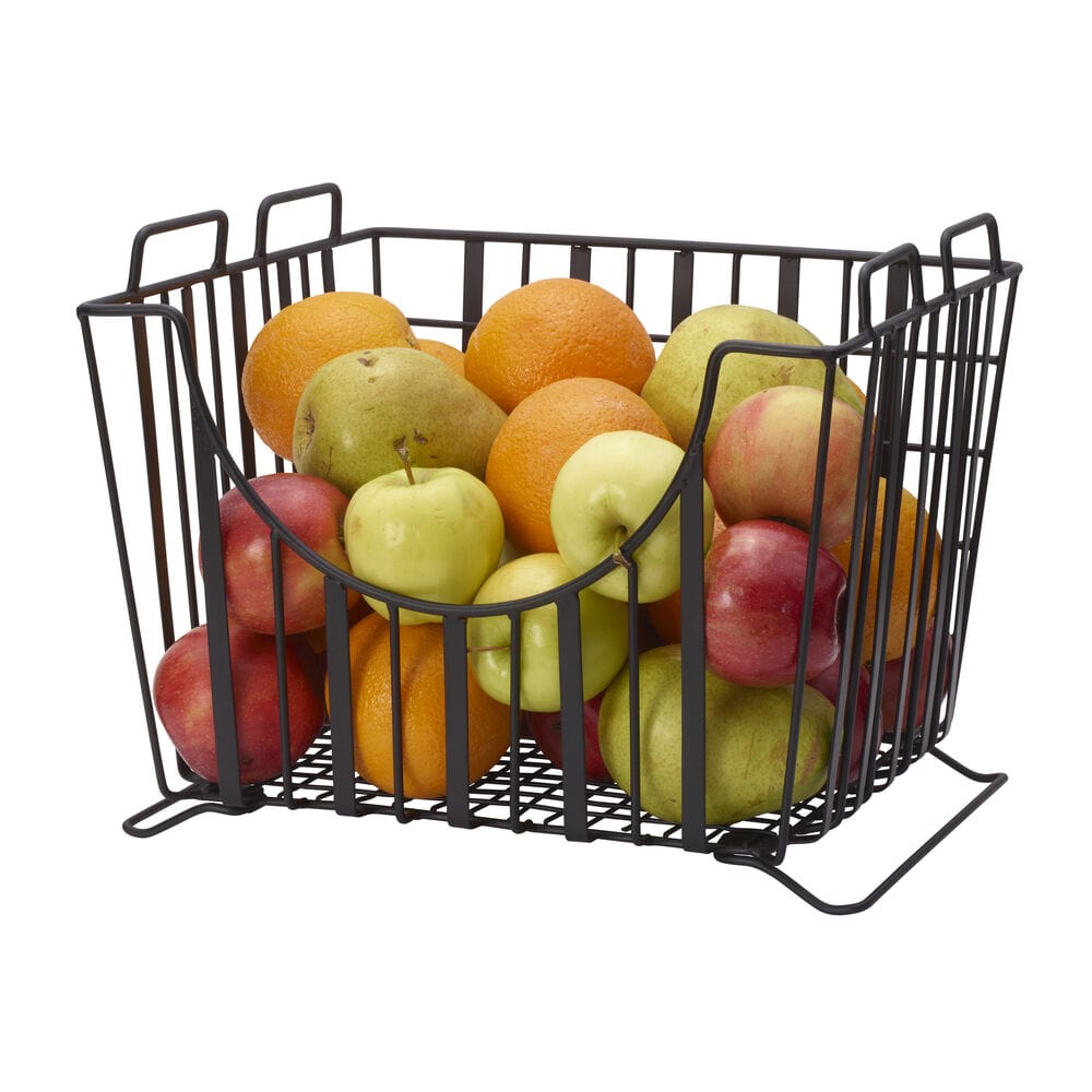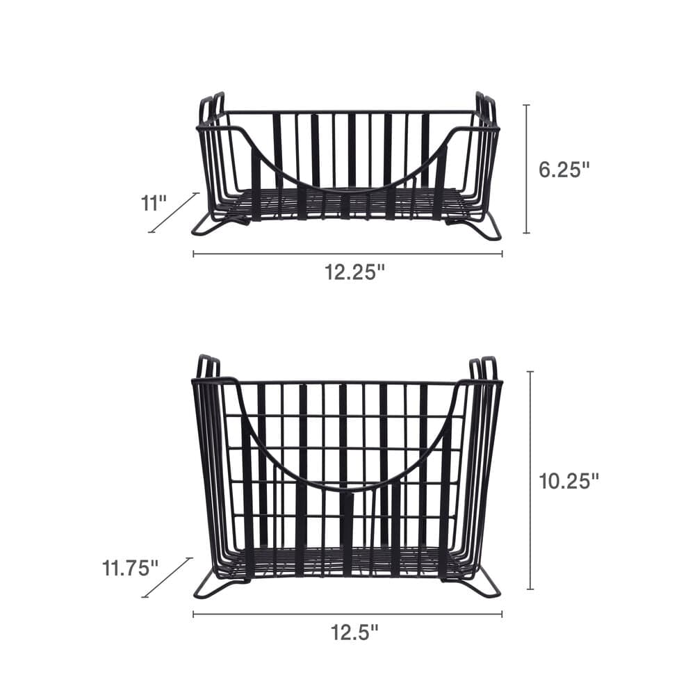 Save counter space with this Set of 2 Baskets. This wire-framed design has a contemporary black finish that complements any d??cor. these stylish and functional baskets are ideal for displaying fruit and vegetables. serving rolls and bagels. or storing small. essential items on a counter or table. Baskets can be stacked or separated. nest for compact storage when not in use. and feature convenient carrying handles.