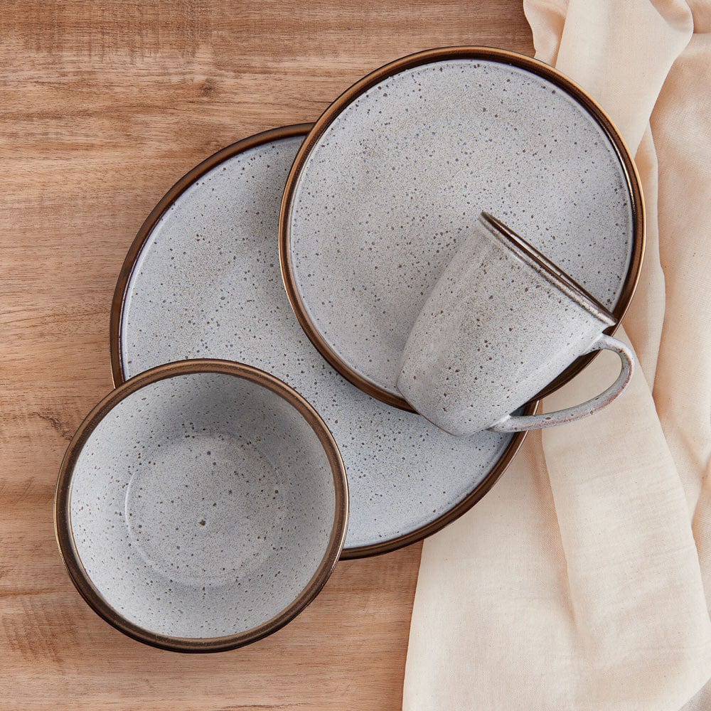 ? Dinnerware Set for 4: This 16 piece dinnerware set includes (4) each of: 10-1/2 inch dinner plate. 8-1/2 inch salad plate. 6 inch diameter (25 ounce) soup cereal bowl and 13 ounce mug