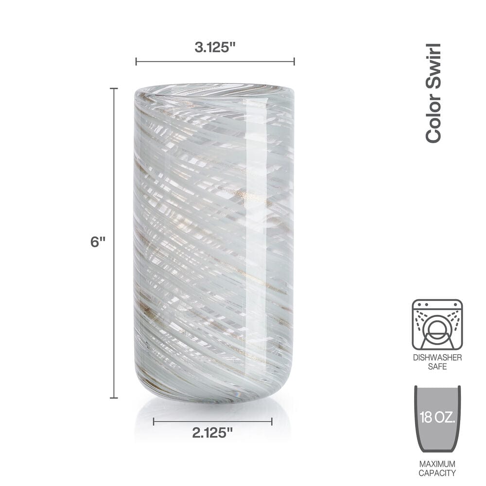 Bold and modern. this Color Swirl Set of 4 Highball Glasses with tones of warm grey and white swirls is ideal for serving cocktails. as well as for use as beverage glasses to enjoy juice. soda. iced tea. water. lemonade. and more. Beautifully handcrafted of glass. each glass is unique and catches the eye with distinct. delicate bubble accents and shades of gray that sparkle in the light.