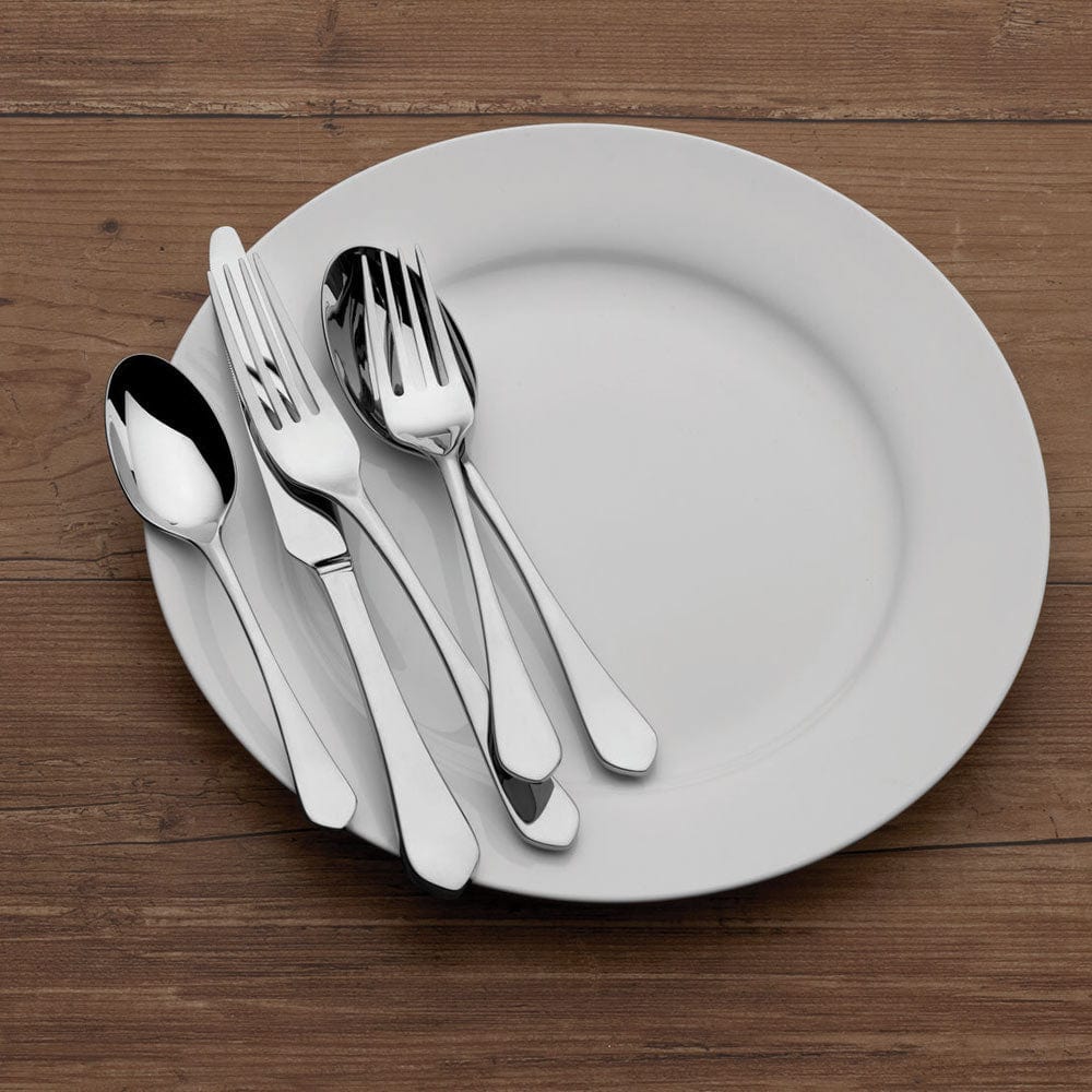 This Colson Flatware Set features classic teardrop handles that are given a modern twist with a gently curved point at the tip and a lustrous mirror finish. The timeless style adds a touch of sophistication to your dining table.