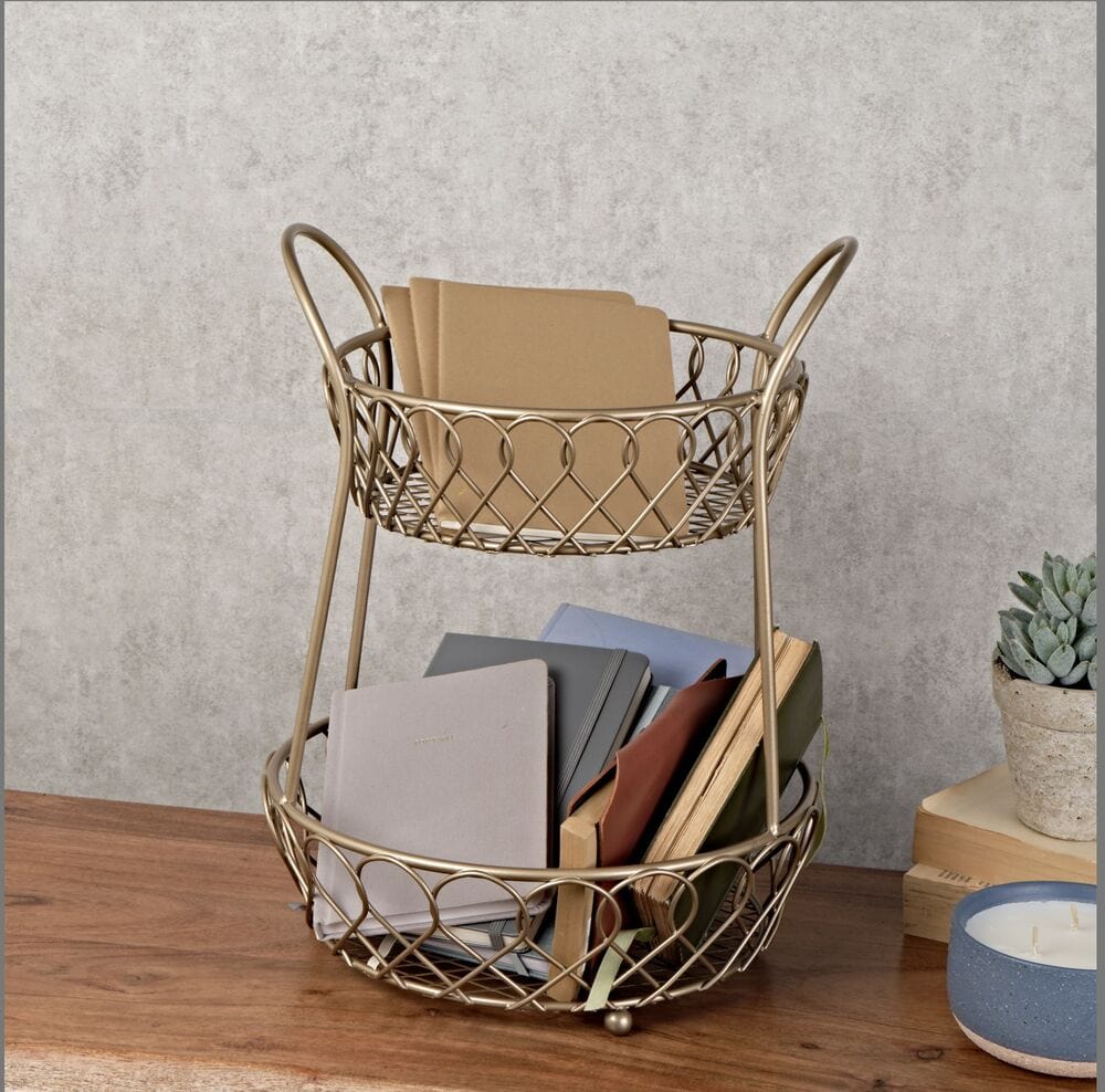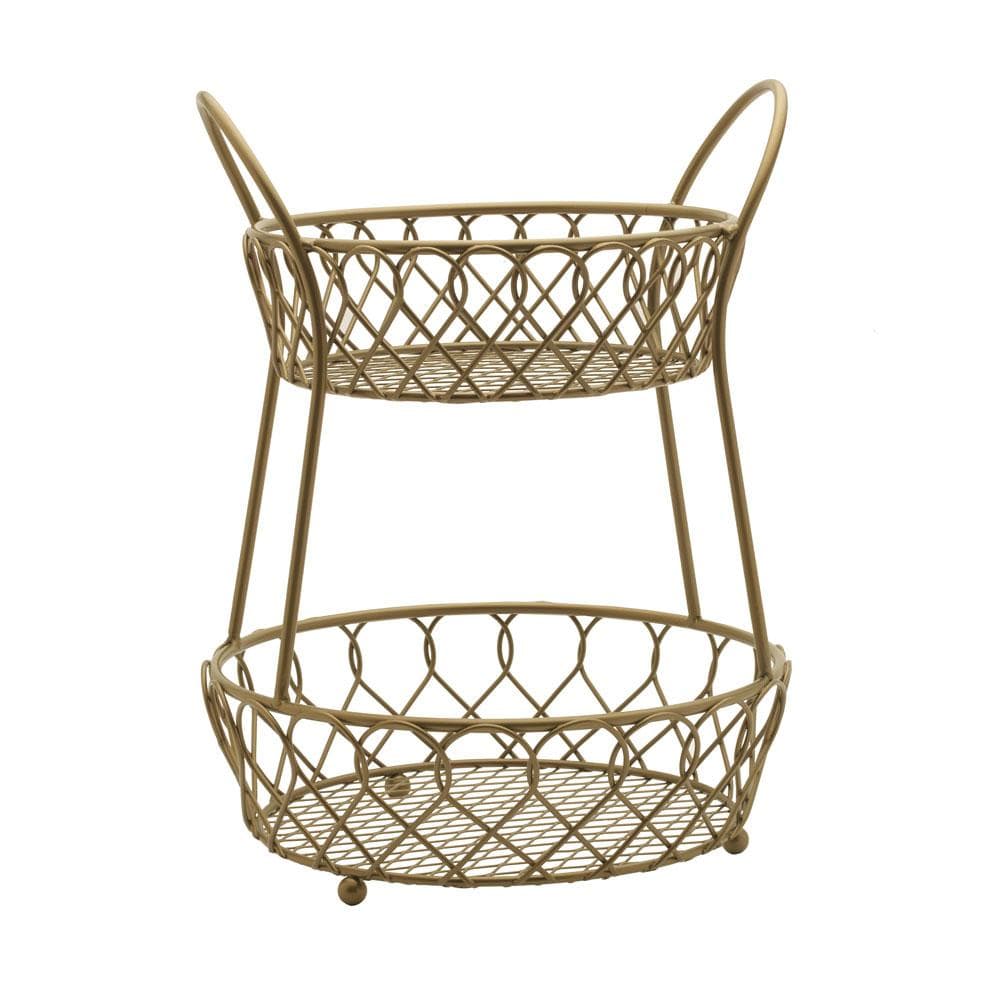 Loop and Lattice 2 Tier Matte Gold Countertop Fruit Storage Basket