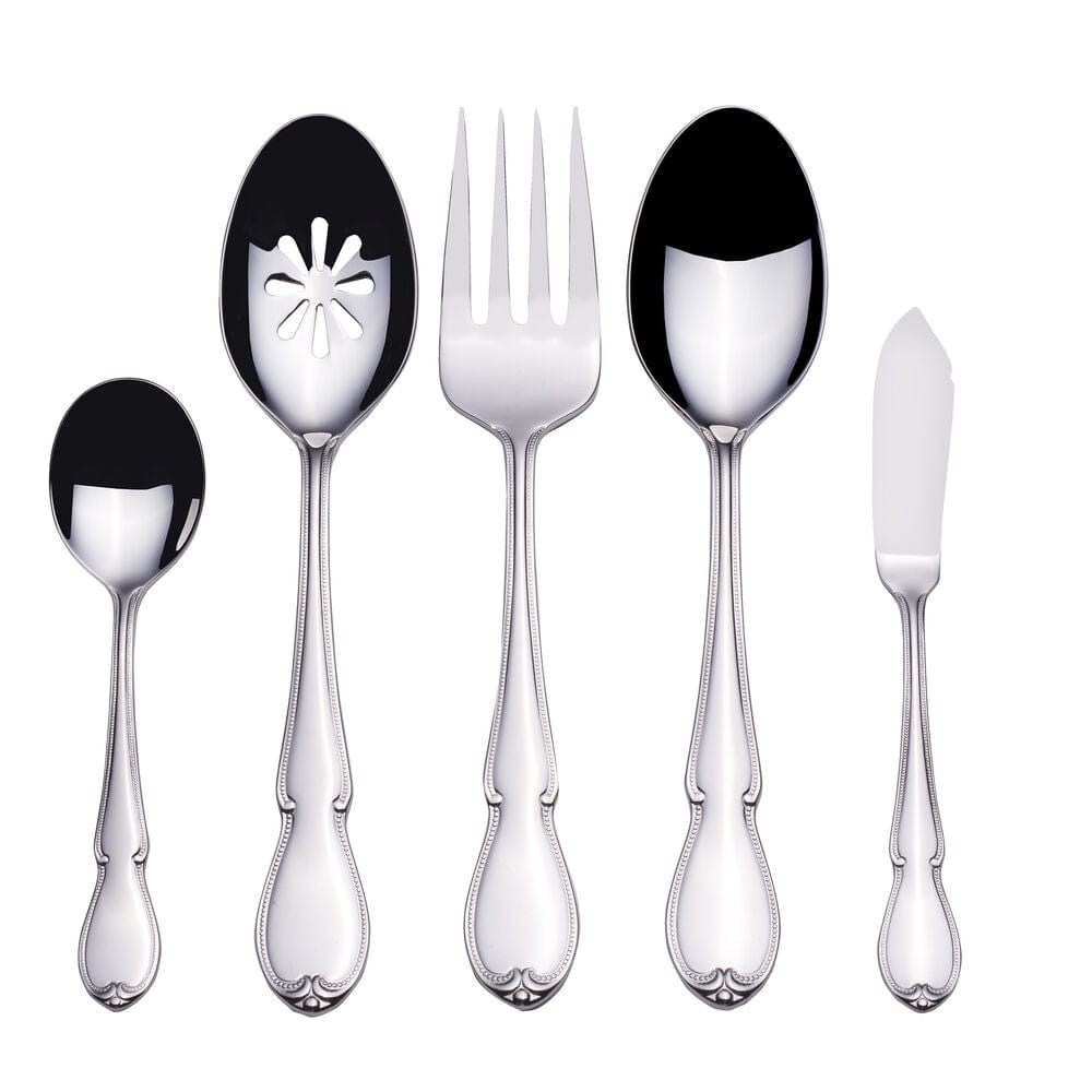This Marseille flatware set effortlessly complements both modern and traditional table settings. adding a refined touch to any dining occasion. Its versatile design allows it to seamlessly blend with a wide range of table styles. whether you’re hosting a contemporary gathering or a more classic. timeless dinner. This flatware enhances the visual appeal of your table. while its polished finish harmonizes beautifully with any stemware or dinnerware. elevating the overall dining experience and making it suitable for every occasion. from casual meals to special celebrations.