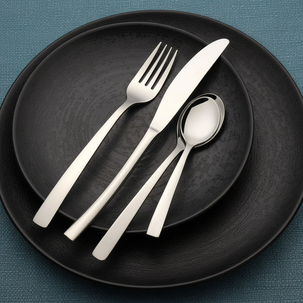 Towles Merion Flatware Set will streamline the presentation of your place settings. Crafted of stunning 18/10 stainless steel with a lustrous mirror finish. this sleek and stylish set features handles with a slim profile that curves smoothly and seamlessly into the heads of each utensil. The dinner knife adds a touch of intrigue with its own unique rounded design and unexpected bend in the middle. 16 piece flatware set. service for four. includes (4) each: dinner fork. dinner knife. dinner spoon. and teaspoon. Dishwasher safe.