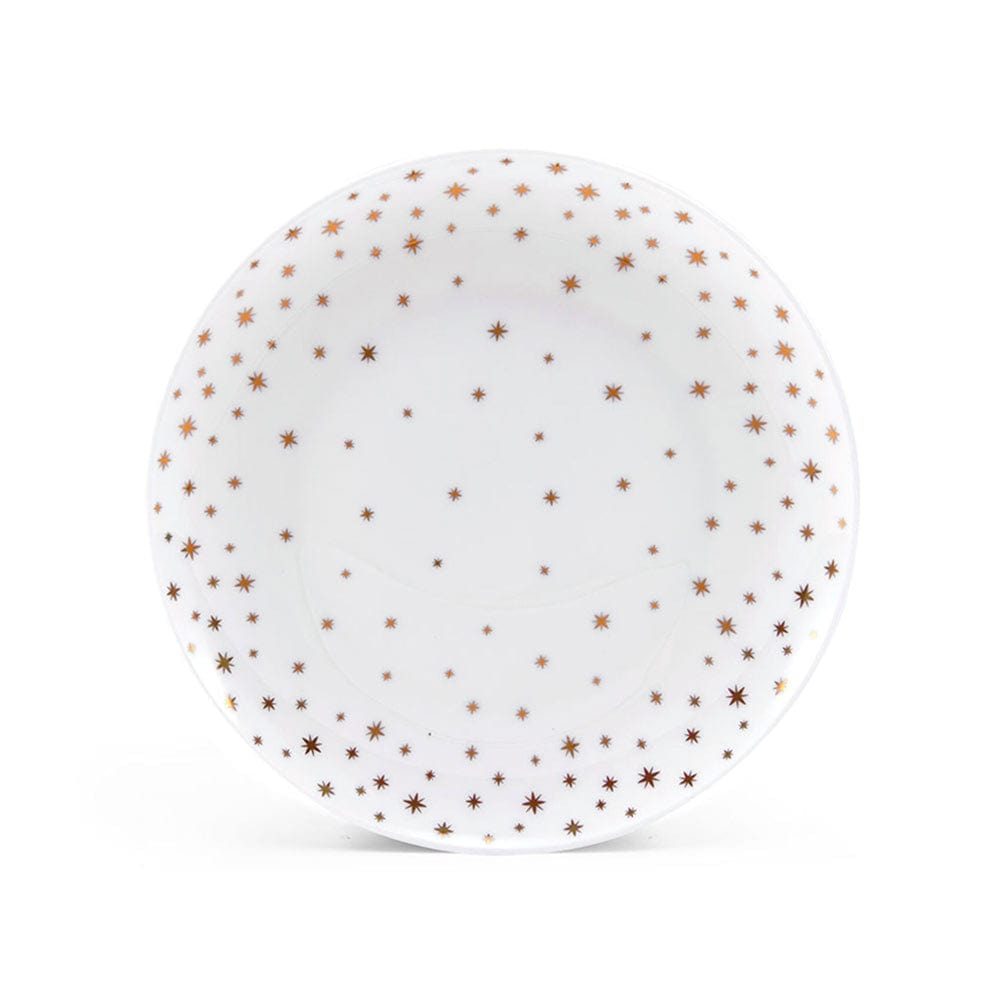 This Mikasa Millie Gold Set of 4 Salad Plates feature a contemporary coupe shape that is sprinkled with a dazzling star pattern. and is perfect for everyday dining. but also great for bringing excitement to upbeat celebration dinners.