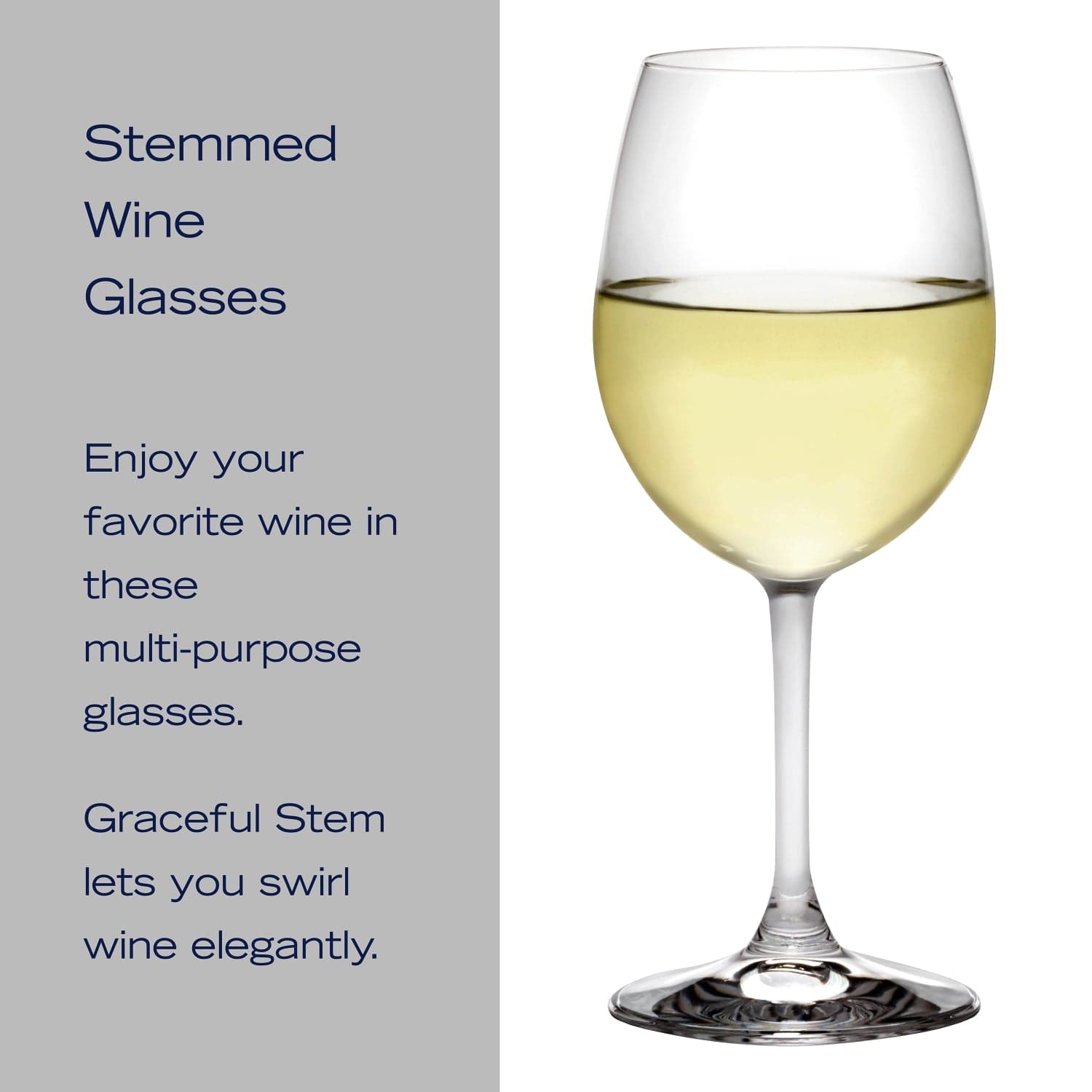 The Napoli Glassware Collection by MIkasa features high-quality. long-lasting drinkware. perfect for any occasion. Crafted of glass. each stunning piece is decorative and functional. Add a look of elegance with these stemmed wine glasses. The perfect addition to your home bar. Dishwasher safe. Set of 4 wine glasses. each measures 8-1/4 inch high and holds approximately 16-1/2 ounces.