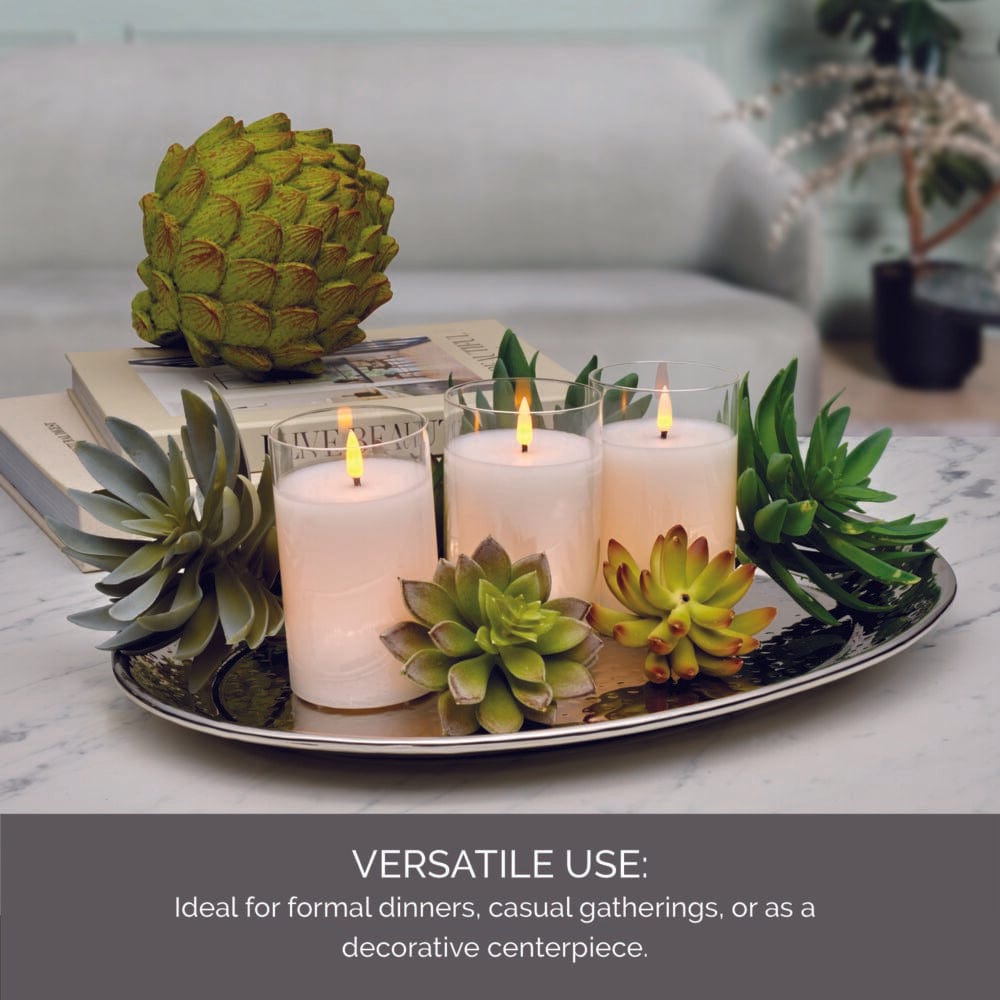 Elevate your entertaining with the Radiance Hammered Oval Serving Tray. This tray blends timeless elegance with everyday practicality. The dazzling hammered finish reflects light beautifully. making it a stunning centerpiece for any table or buffet. Its generous size and lightweight construction make it perfect for serving appetizers. desserts. or even an array of beverages. Whether you’re hosting a formal dinner. a casual gathering. or simply looking for a decorative piece. this serving tray combines functionality with style. Add brilliance to your serveware collection with the Radiance Hammered Oval Tray??where beauty meets practicality.
