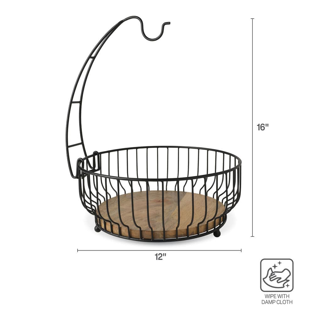 This Savannah Fruit Storage Basket with Banana Hook allows fruit to serve as a decorate accent piece in your kitchen when it is being stored to ripen for consumption. The black. wire-framed structure lets fruit breathe while making it visually appetizing. and features a hook to hang a batch of bananas so they won’t bruise and will ripen evenly.