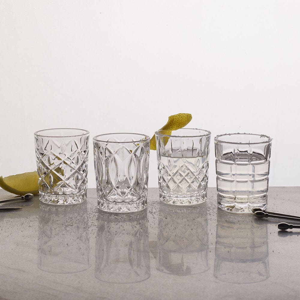 This Shot Glass Cordial Set will be the perfect addition to your home bar with elegant line and geometric patterns that create texture and shine. Each glass in this set has a unique pattern so everyone can easily identify their drink by its distinct design. and theyre deal for bringing people together and getting the party started.