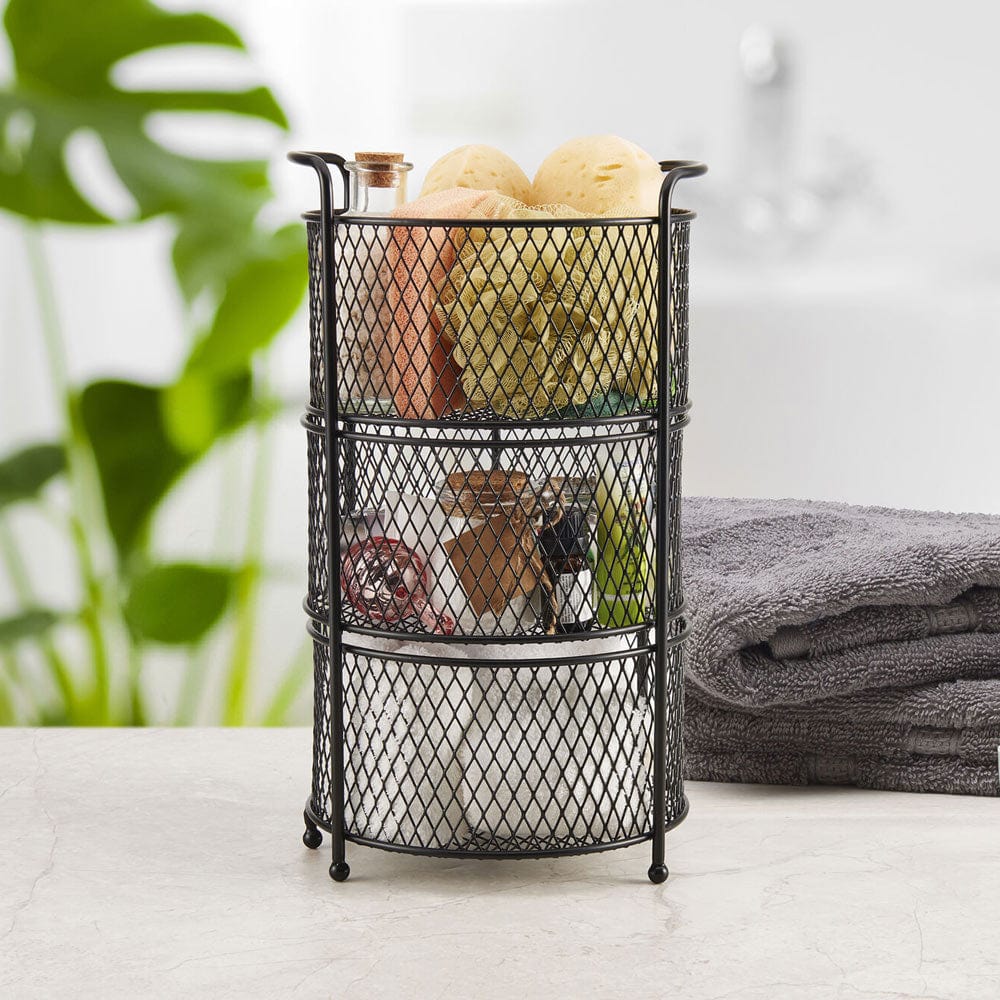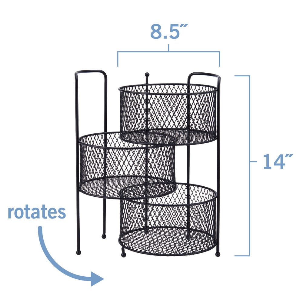 This Gourmet Basics Soto 3 Tier Basket Organizer Stand features a black. wire-frame design that will add a modern look to your home decor. Perfect for maximizing space on countertops. tables. under sinks. in closets. and more.