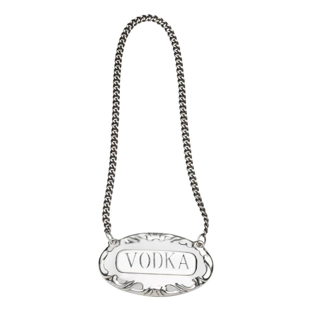 Add elegance to your home bar with this Empire Silver Vodka Liquor Label. This liquor label includes a silver chain to hang around the neck of your decanter with the word Vodka . Bring the luxury of sterling to your cocktail hour for elegance and sophistication.