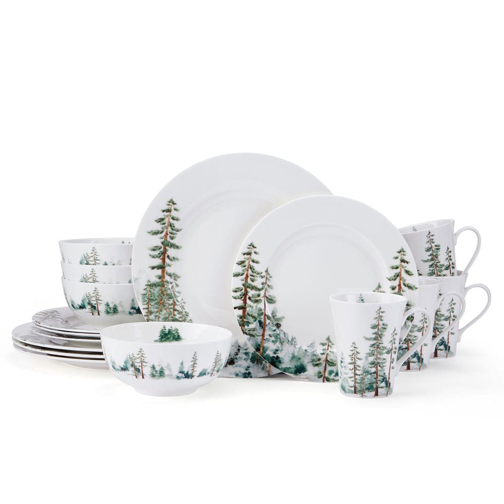 Watercolor Forest 16 Piece Dinnerware Set. Service for 4